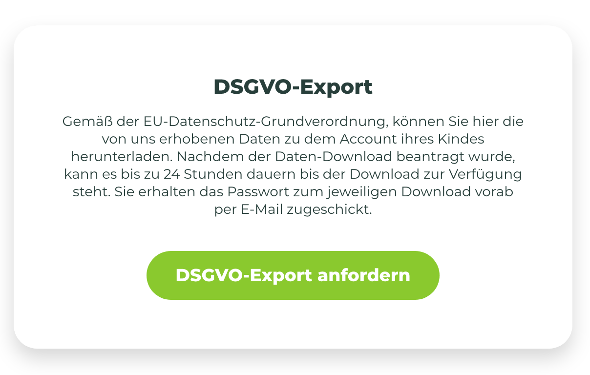 Für Nutzer:innen unter 16-Jahren stellen wir ein Dashboard für Eltern zur Verfügung. Damit können Eltern die Nutzung Ihres Kindes verfolgen und Bereiche freischalten oder einschränken. Ein großer Teil von beAzubi ist die Ausbildungs- oder Praktikumssuche. Je nach Alter Ihres Kindes ist es sinnvoll, dass dieser Teil von beAzubi eingeschränkt wird und erst später aktiviert werden soll. Über das Eltern-Dashboard können Sie genau dies für jedes Ihrer Kinder individuell entscheiden. Ein weiterer Teil von beAzubi ist die Berufsfelderkundung. Diese dient als erste berufliche Erfahrung für Schüler:innen der 8. Klasse. Ob Ihr Kind an einer solchen Berufsfelderkundung teilnehmen darf, obliegt Ihnen als Elternteil. Über das Eltern-Dashboard können Sie für jedes Ihrer Kinder individuell entscheiden, ob sie an der Berufsfelderkundung teilnehmen dürfen oder nicht. Die persönlichen Daten Ihres Kindes sind bei uns grundsätzlich anonymisiert. Unternehmen sehen persönliche Daten wie Name, Profilbild und Geschlecht erst nach einer individuellen Freigabe durch Ihr Kind. Alle von uns erhobenen Daten können Sie über den DSGVO-Export aus dem Eltern-Dashboard abrufen und nachvollziehen, welche Daten in unserem System in Verbindung mit Ihrem Kind entstanden sind. Verfolgen Sie die Aktivitäten Ihres Kindes und erhalten Sie E-Mail-Benachrichtigungen, wenn Ihr Kind von Unternehmen kontaktiert wird oder an Berufsfelderkundung-Veranstaltungen teilnimmt Das beAzubi Eltern Dashboard.